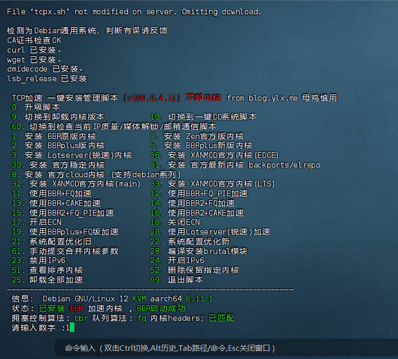 未安装加速模块是成功了还是没成功?debian12 新版BBRP