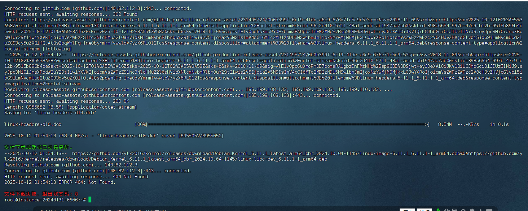 你好,请问更新内核提示这个 文件下载失败,退出状态码: 8
